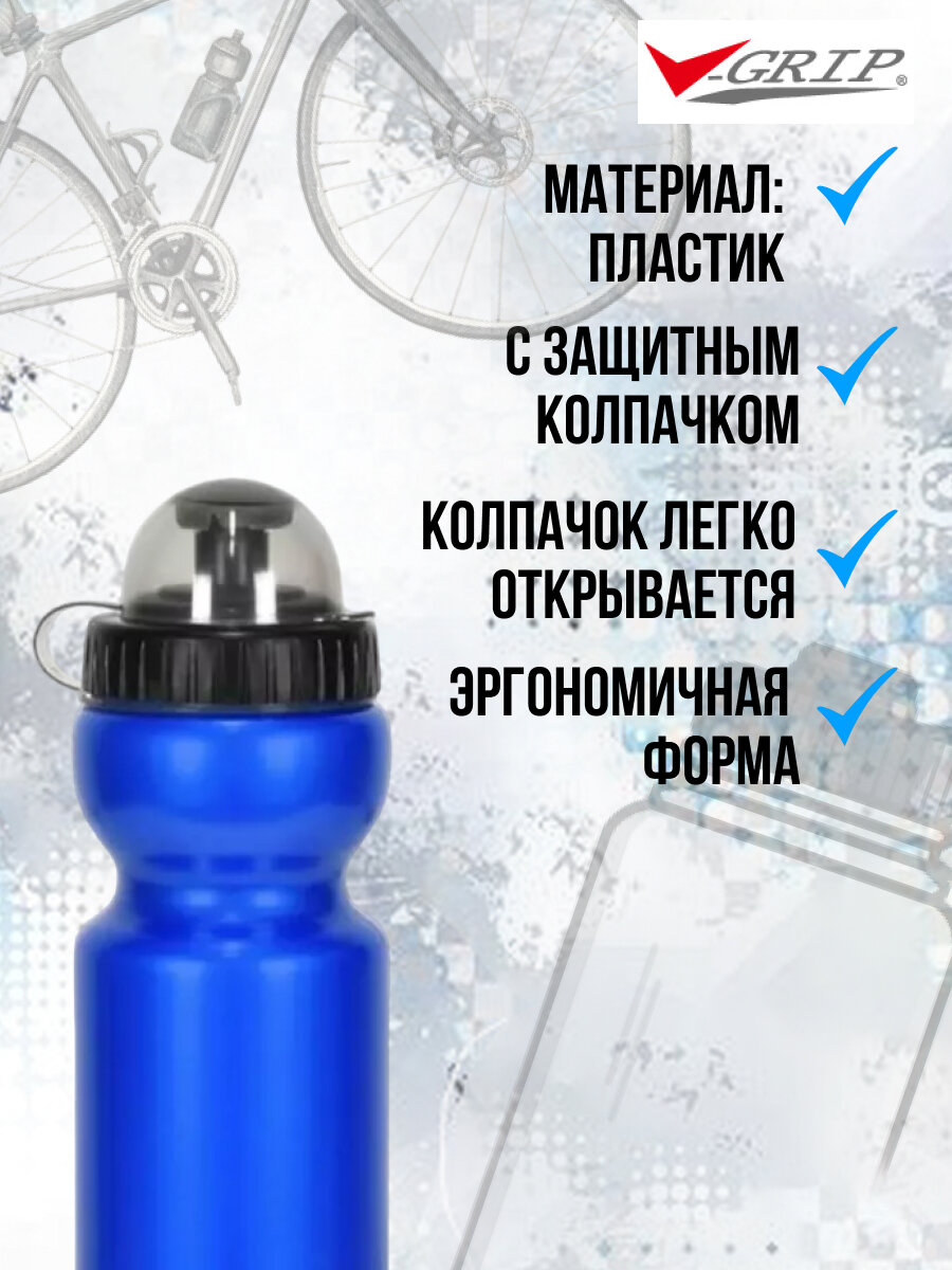 Фляга велосипедная V-grip CWB-700G blue, 750 мл, пластик, синяя, с клапаном и защитным колпачком