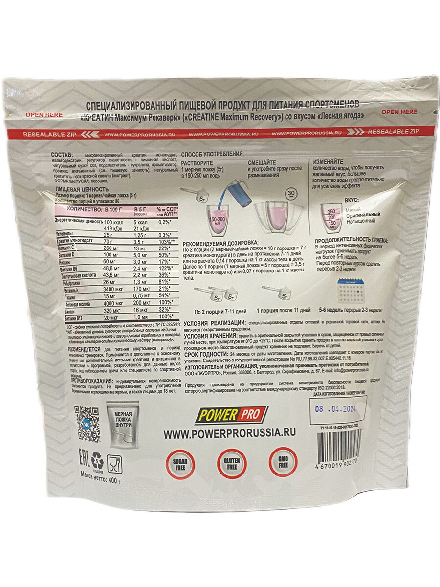 Купить Power Pro Creatine Maximum Recovery 400 гр (Power Pro) Дикие ягоды