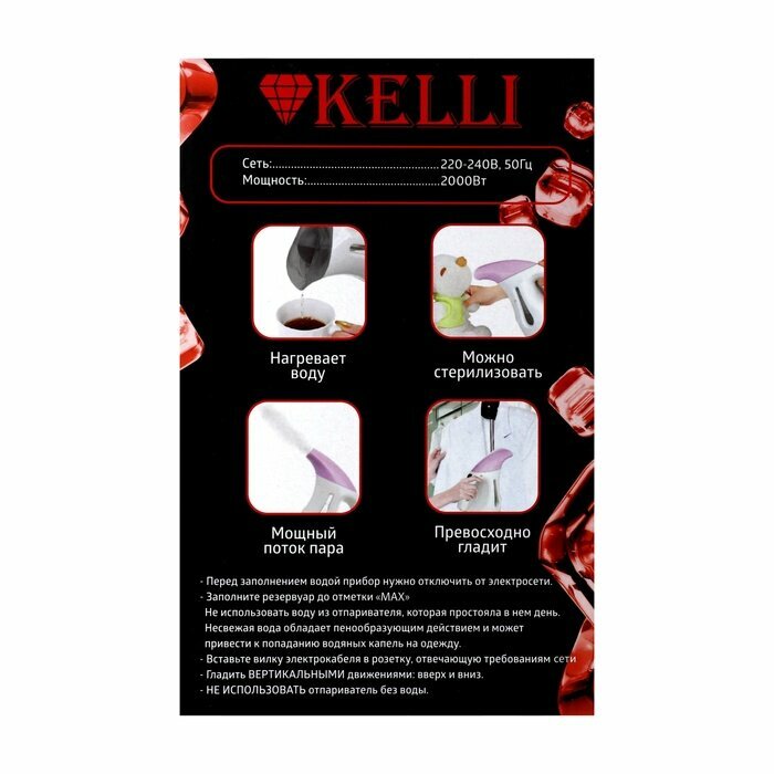 Отпариватель KELLI KL-312, ручной, 1800 Вт, 500 мл, насадка чайник, бело-фиолетовый Kelli 4213356 .