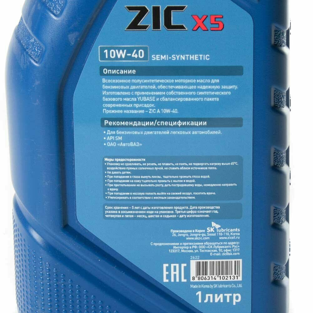 Масло моторное ZIC X5 10W40, 1л. ZIC-10W40-X5-1L