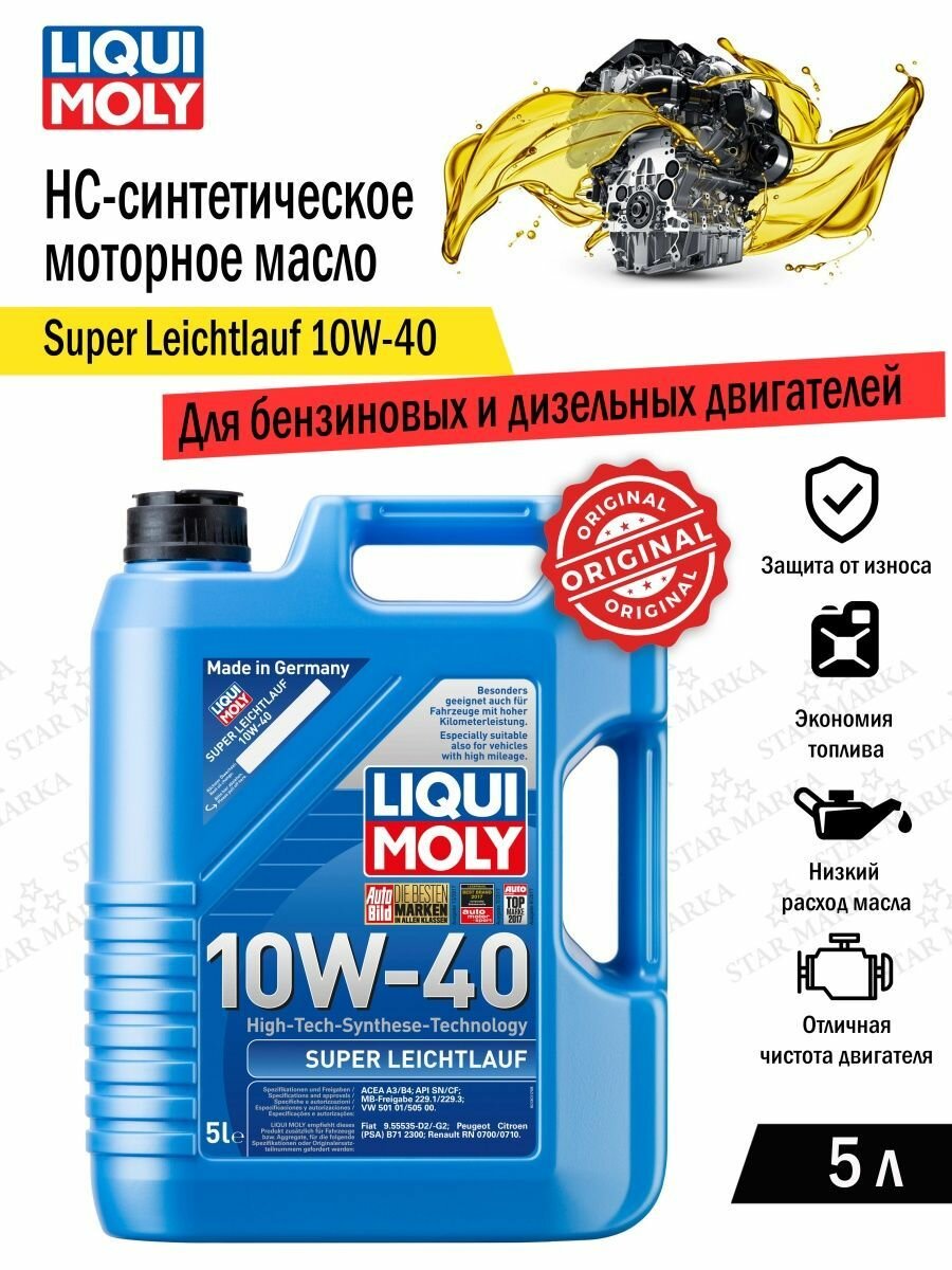 LIQUI MOLY 9503 , замена 1928 10W-40 Super Leichtlauf, 1л (НС-синт.мотор.масло)