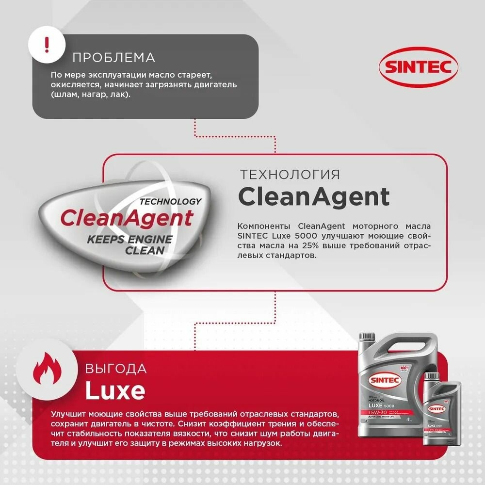 СохранитьМоторное масло SINTEC LUXE 5000 SAE 5W-40 API SL/CF 5л интересное: