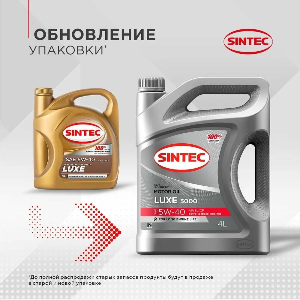 масло sintec 5w40 luxe 5000 api sl/cf 4л п/с 801933/600237