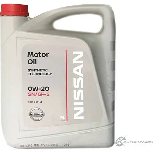 Масло моторное Nissan Motor Oil 0w20 синтетическое, API SN, ILSAC GF-5, для бензинового двигателя, 5л, арт. KE90090143