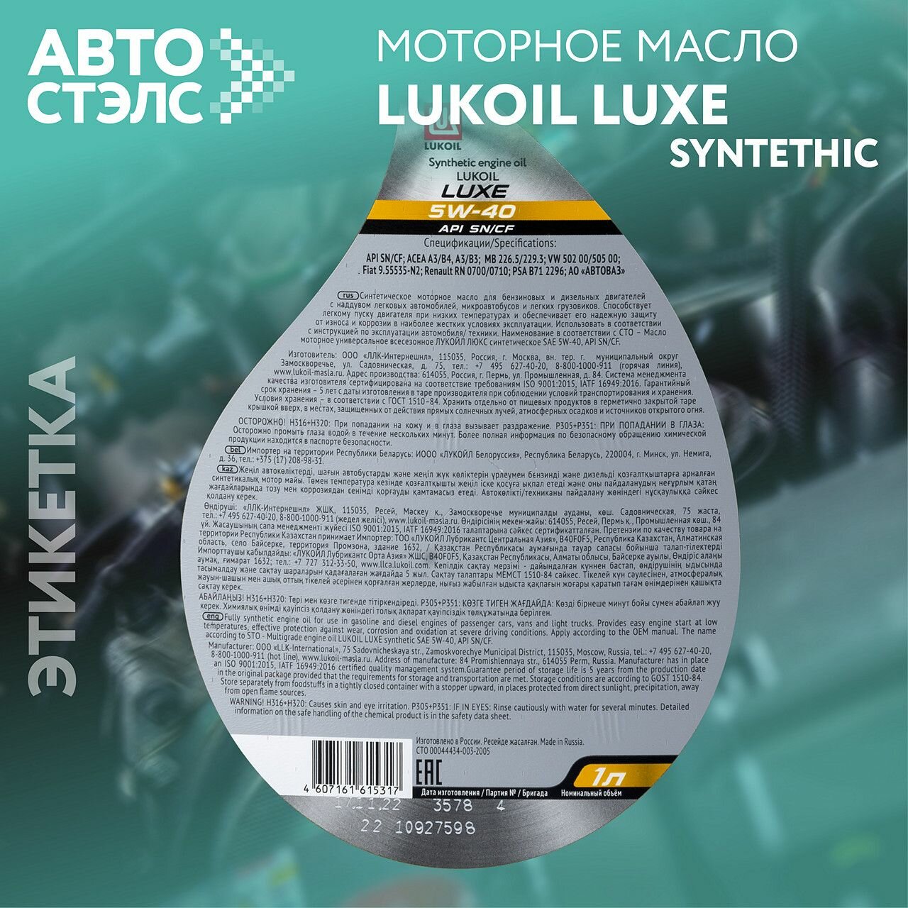В европе масла Лукойл состоят в числе элитных, продаются дороже и ценятся выше многих почитаемых в РФ европейских брендов. |