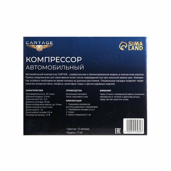 Компрессор автомобильный CARTAGE, серия "" 35 л/мин, компрессор для накачки шин интересное: