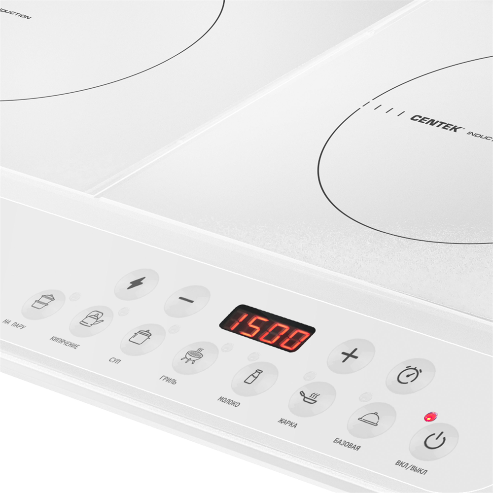 Плитка индукционная Centek CT-1514 Black, 3500Вт, 2 конф, 8 наст мощ-ти, 7 прогр, таймер, LED