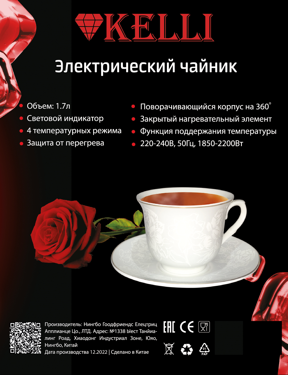 Чайник электрический KELLI KL-1373 1,7 л, чёрный