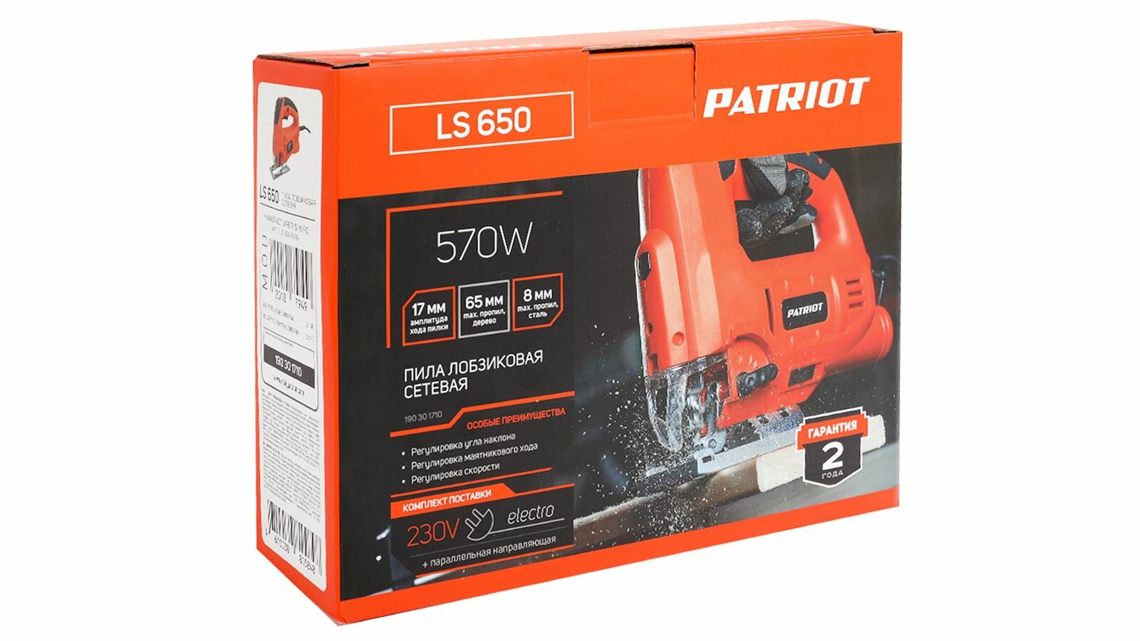Лобзик электрический (электролобзик) мощность 570 Вт, макс толщина дерева 65 мм, 5 поз. цветная коробка PATRIOT LS 650 190301710