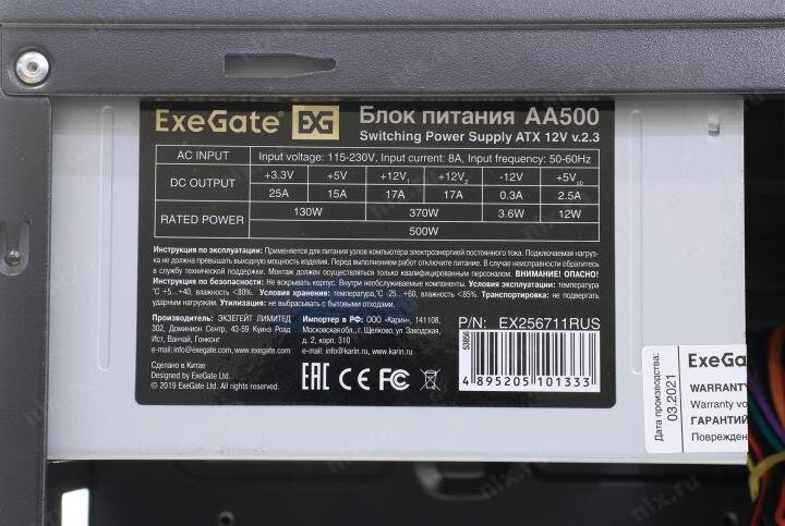 Exegate Корпус Exegate BA-309U2-AA500 500 Вт