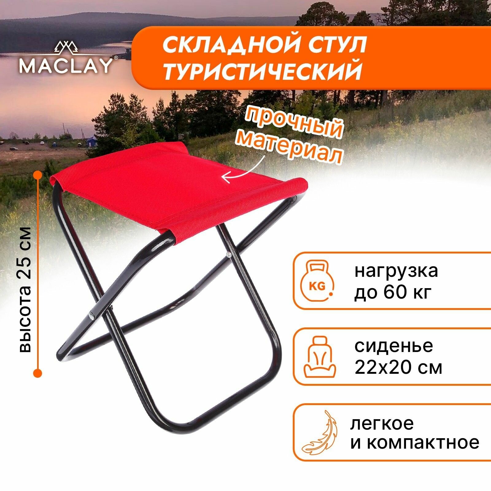 Стул MACLAY 638208 туристический, складной 22 х 20 х 25 см, до 60 кг, красный