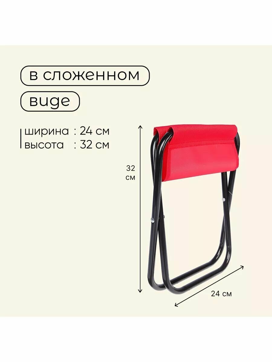 Стул туристический, складной, 22 x 20 x 25 см, до 80 кг, цвет красный