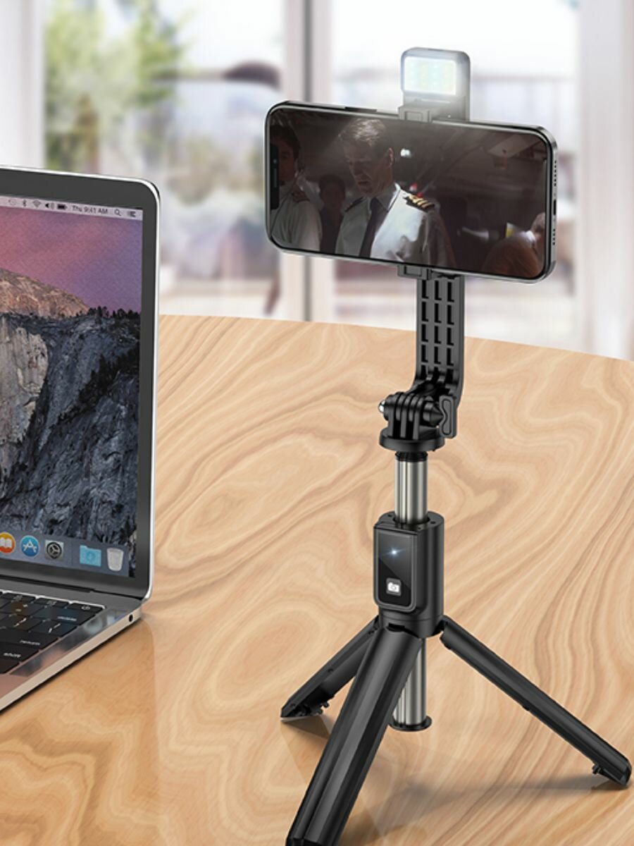 Hoco / K15 tripod / Монопод / Монопод для селфи с пультом BT с подсветкой черный