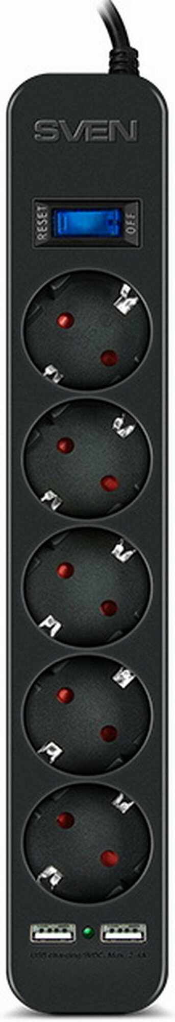 Sven Фильтр SF-05LU 1,8 м 5 евро розеток,2 USB 2.4А , черный, цветная коробка SV-018832
