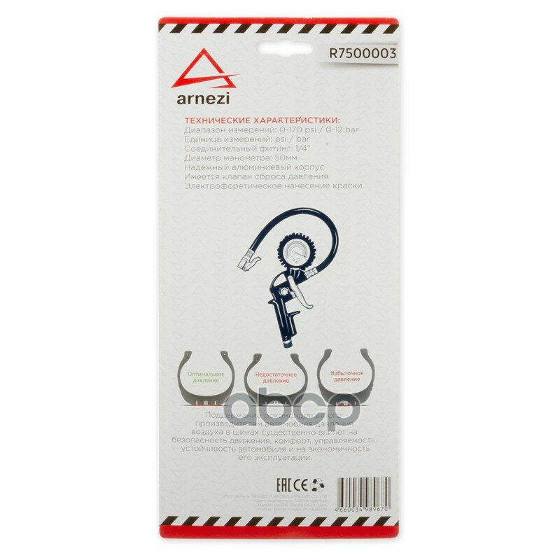 Купить Пистолет Для Подкачки Шин С Манометром, Электрофоретическое Покрытие Arnezi R7500003 ARNEZIR7500003