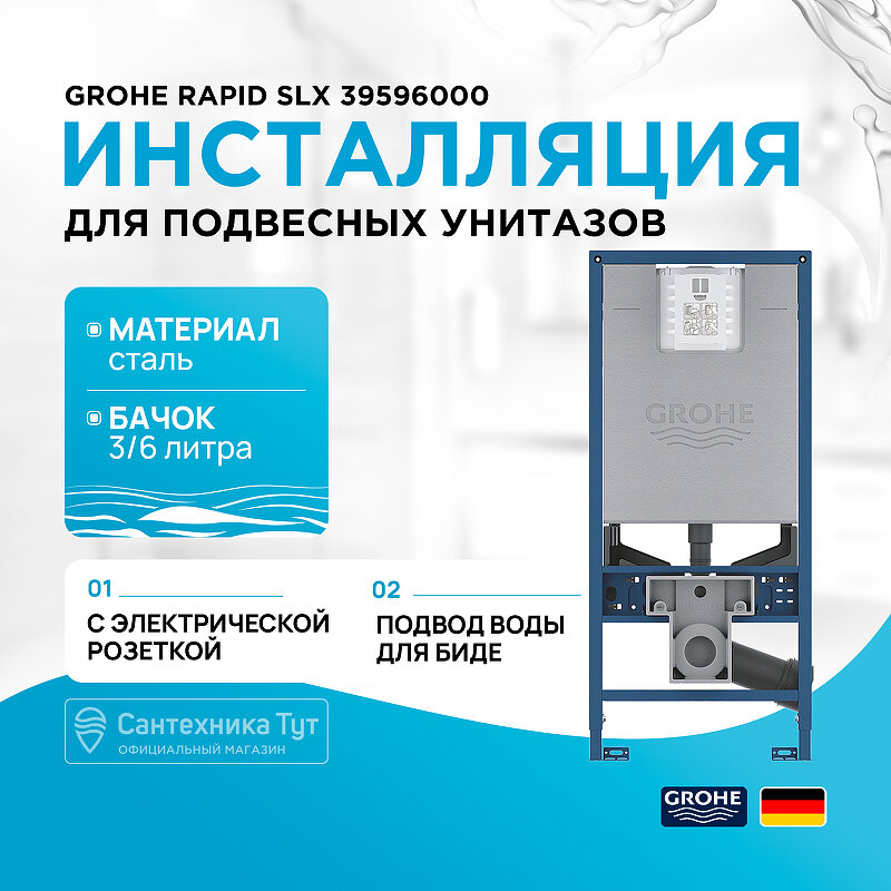 Инсталляция для унитаза Grohe Rapid SLX, со встроенной розеткой для подключения унитазов-биде 39596000