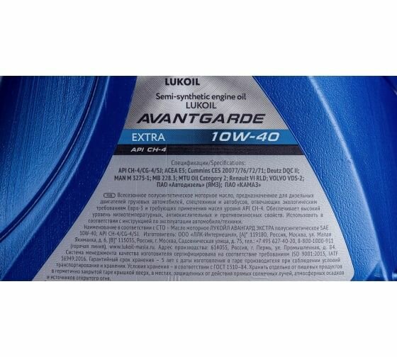 Лукойл (Lukoil) авангард экстра API CH-4 10W-40 20л