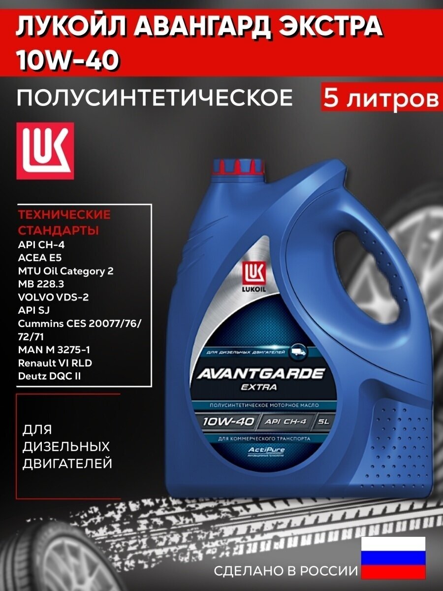 Масло моторное Лукойл Авангард Экстра 10w40 полусинтетическое, CH-4/SJ , для дизельного двигателя, 5л