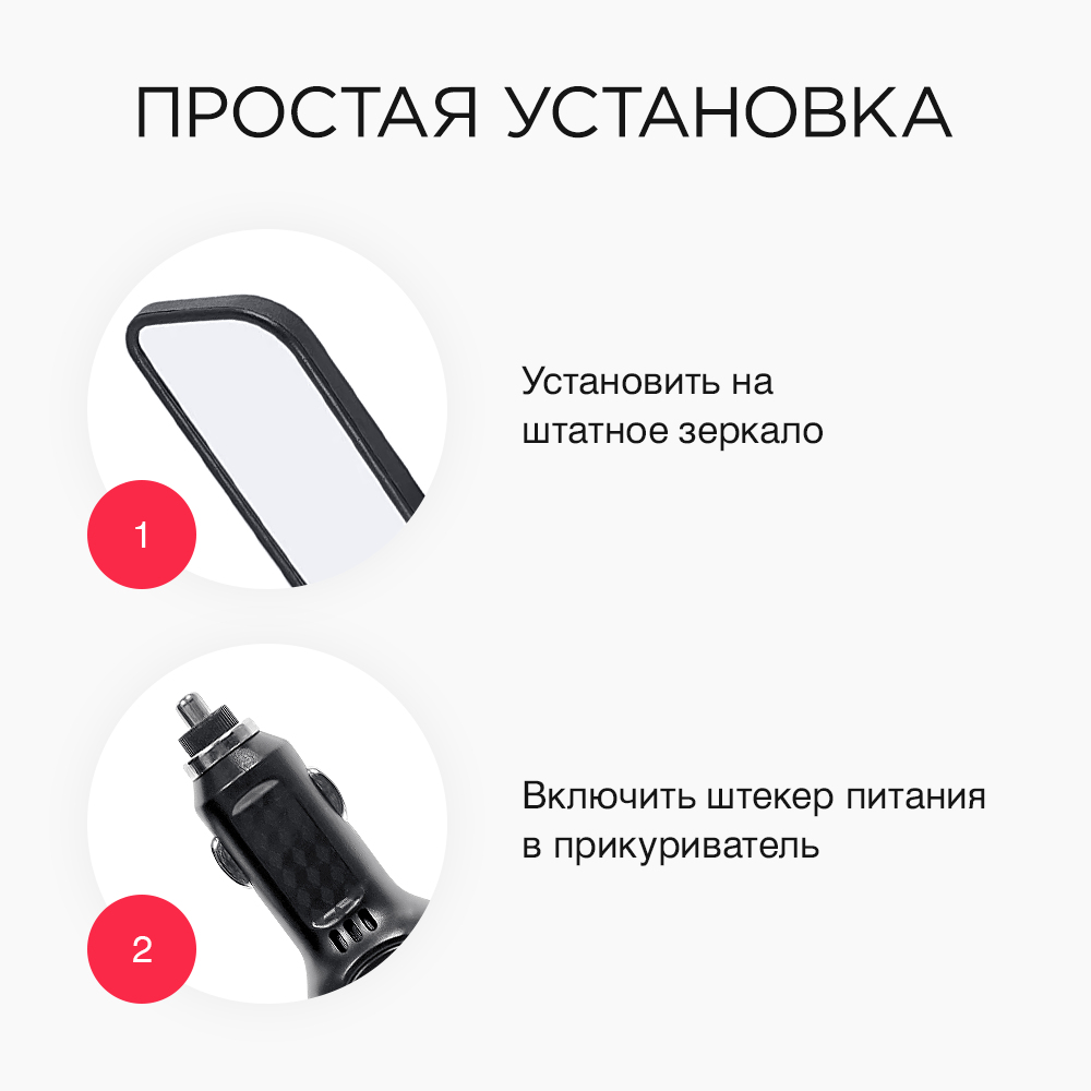 Компактный, удобно крепится к зеркалу заднего вида, не отвлекает от движения