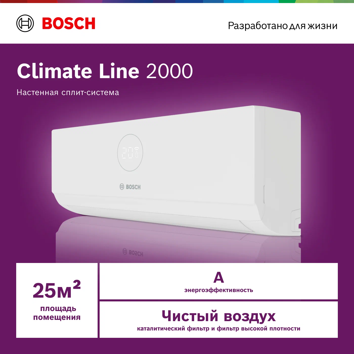 Настенная сплит-система Bosch Climate Line 2000 CLL2000 W 70/CLL2000 70, для помещений до 70 кв.м.