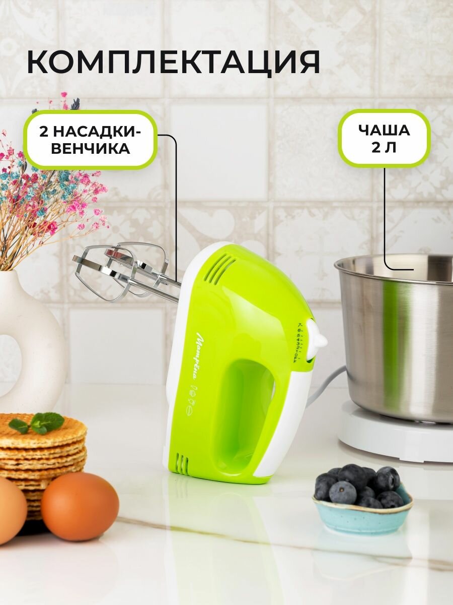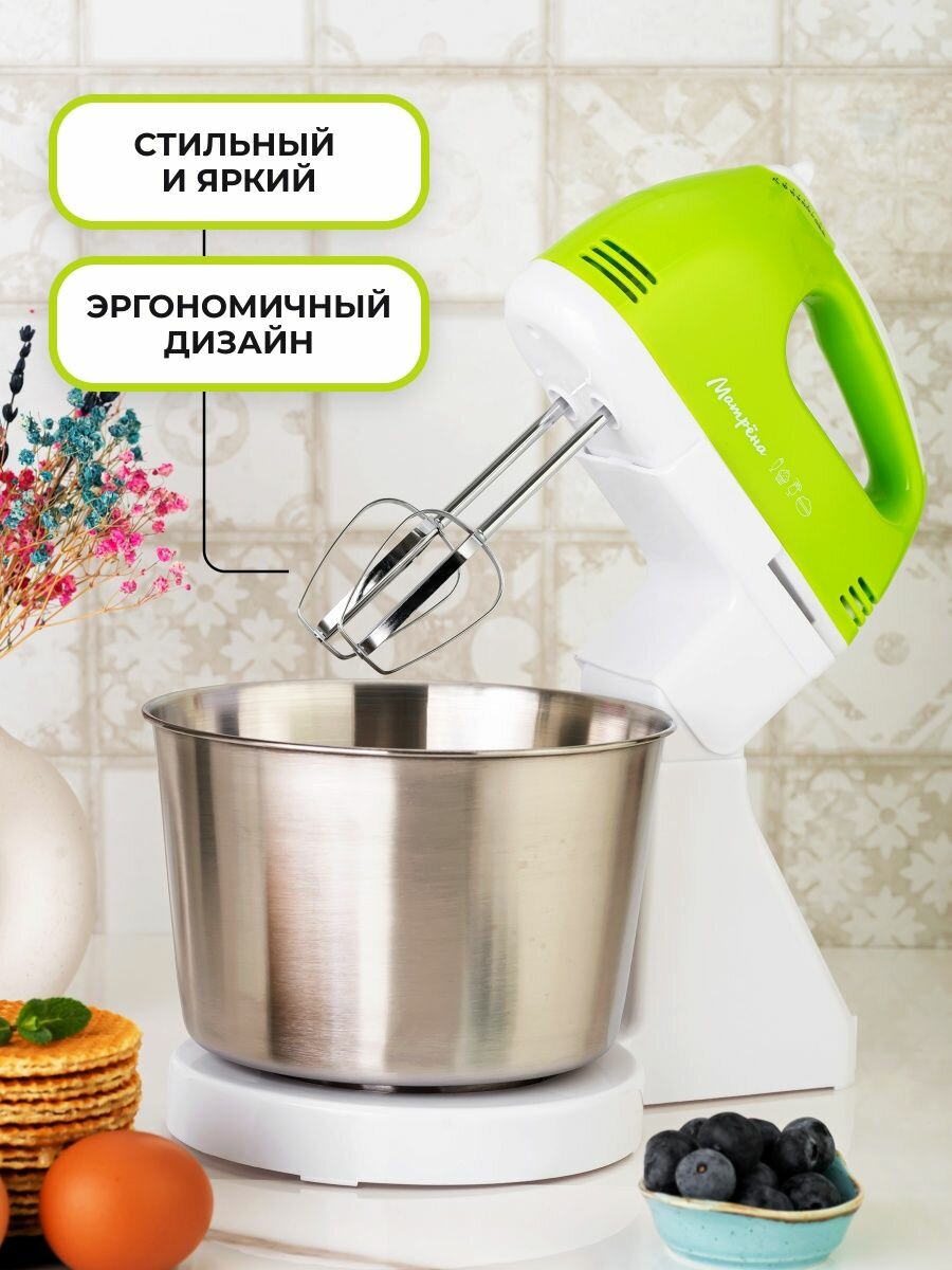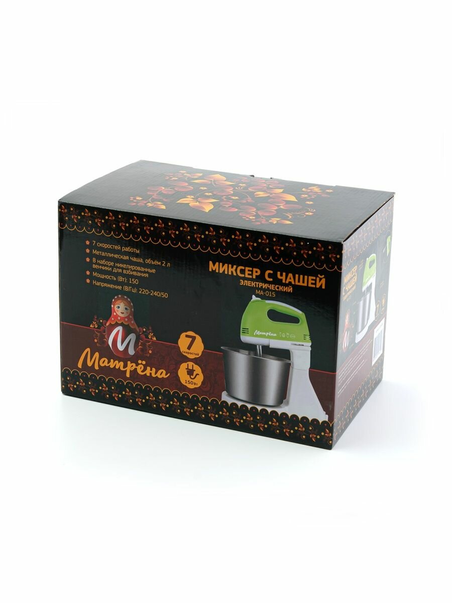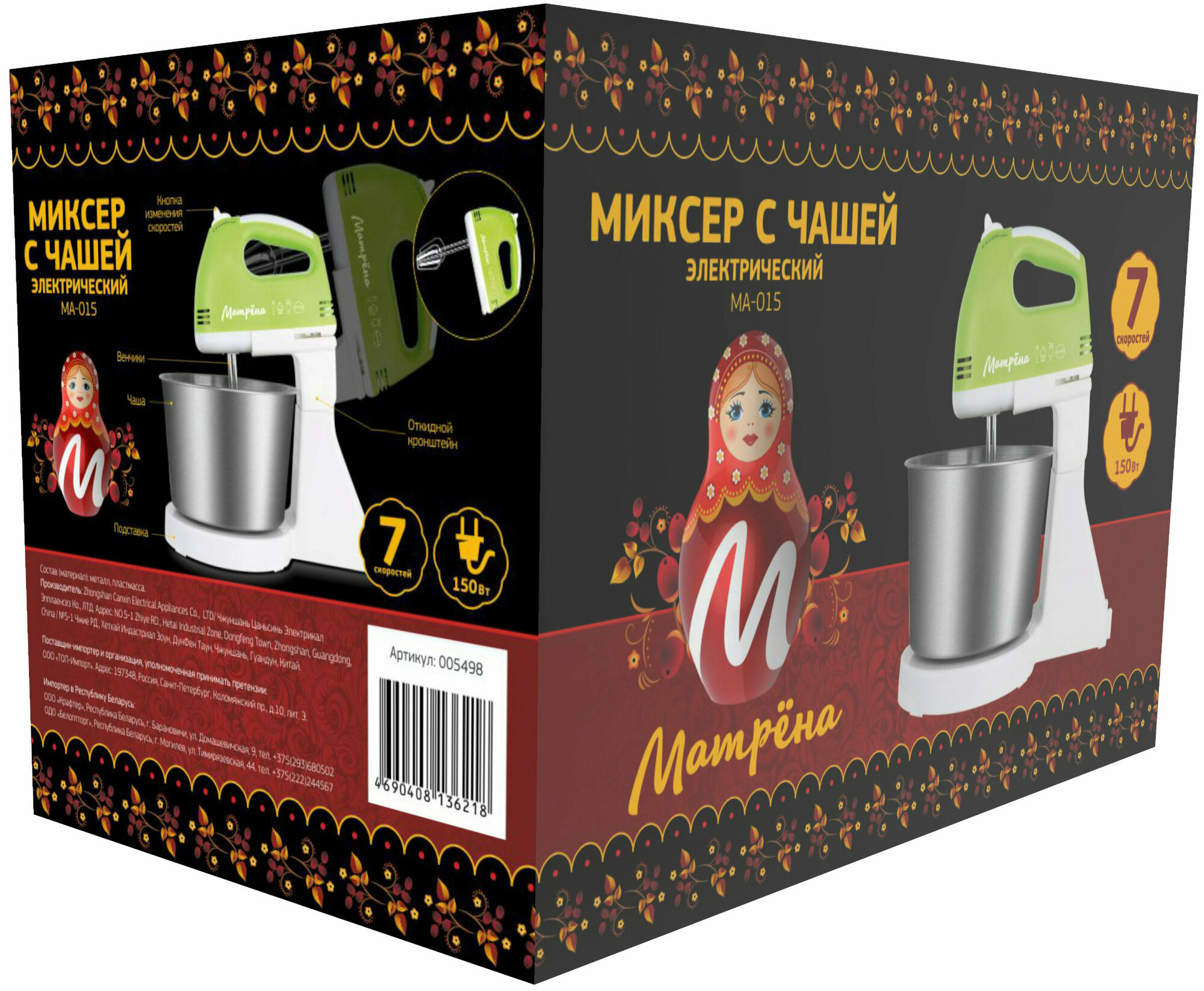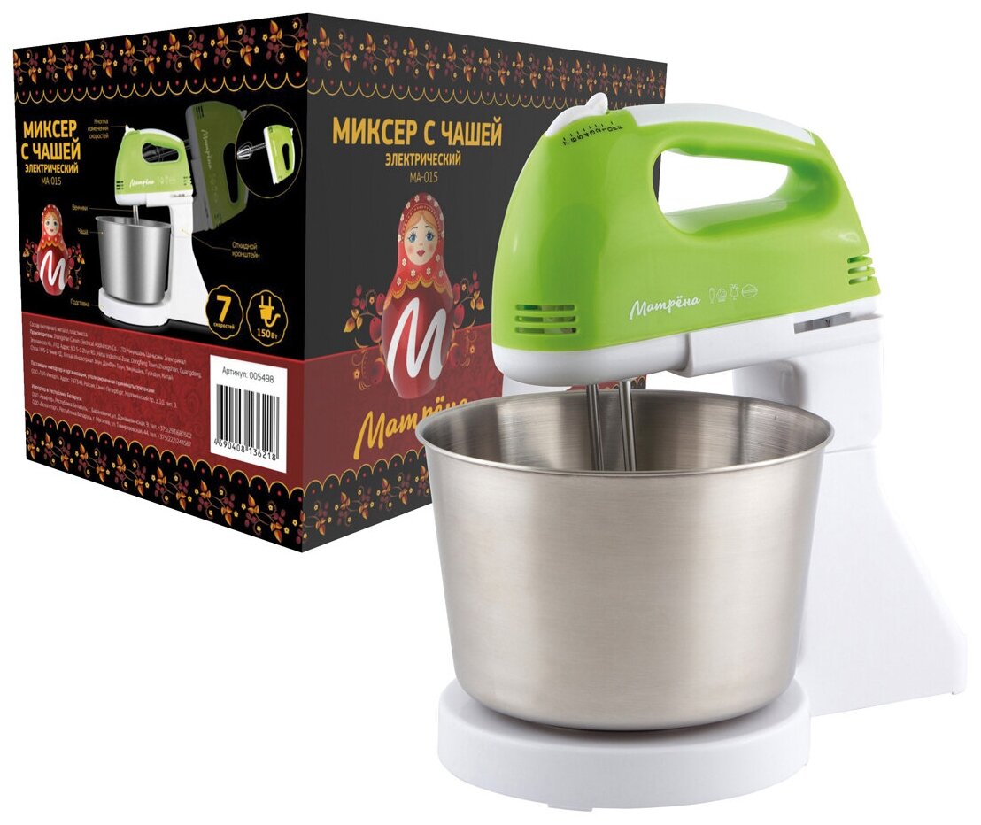 Миксер С Чашей 150ВТ 7 Ск.режимов Чаша МЕТ 2,0Л Бел/зел 5498 Матрена МА-015 5498