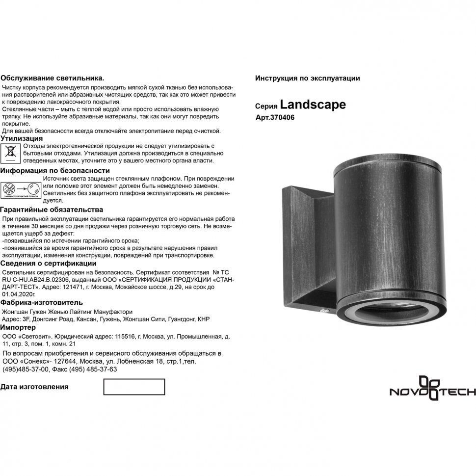 Ландшафтный настенный светильник Novotech LANDSCAPE 370406