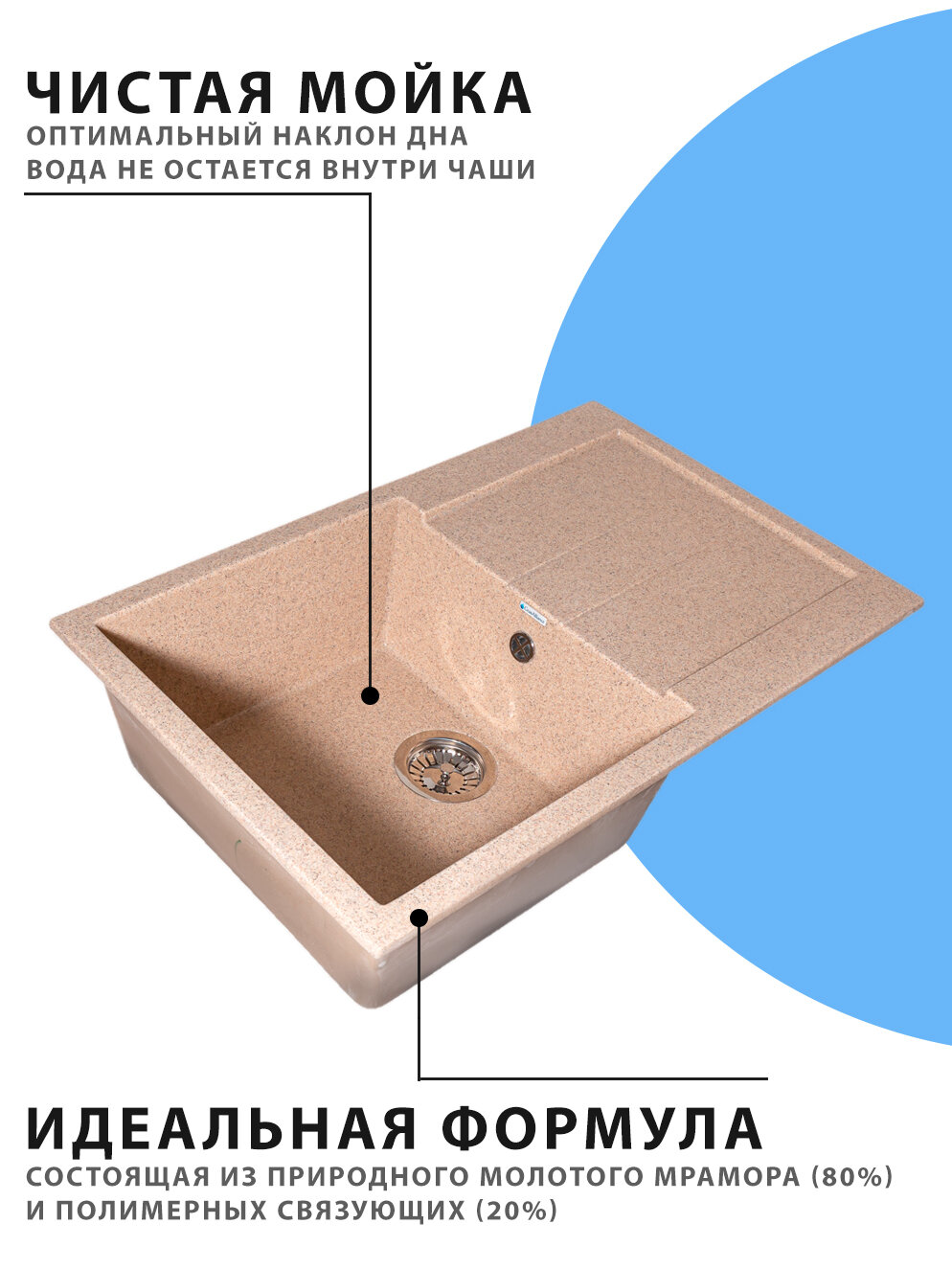 Сохранитьмойка для кухни из искусственного камня прямоугольная с крылом (77x49,3), песочная интересное: