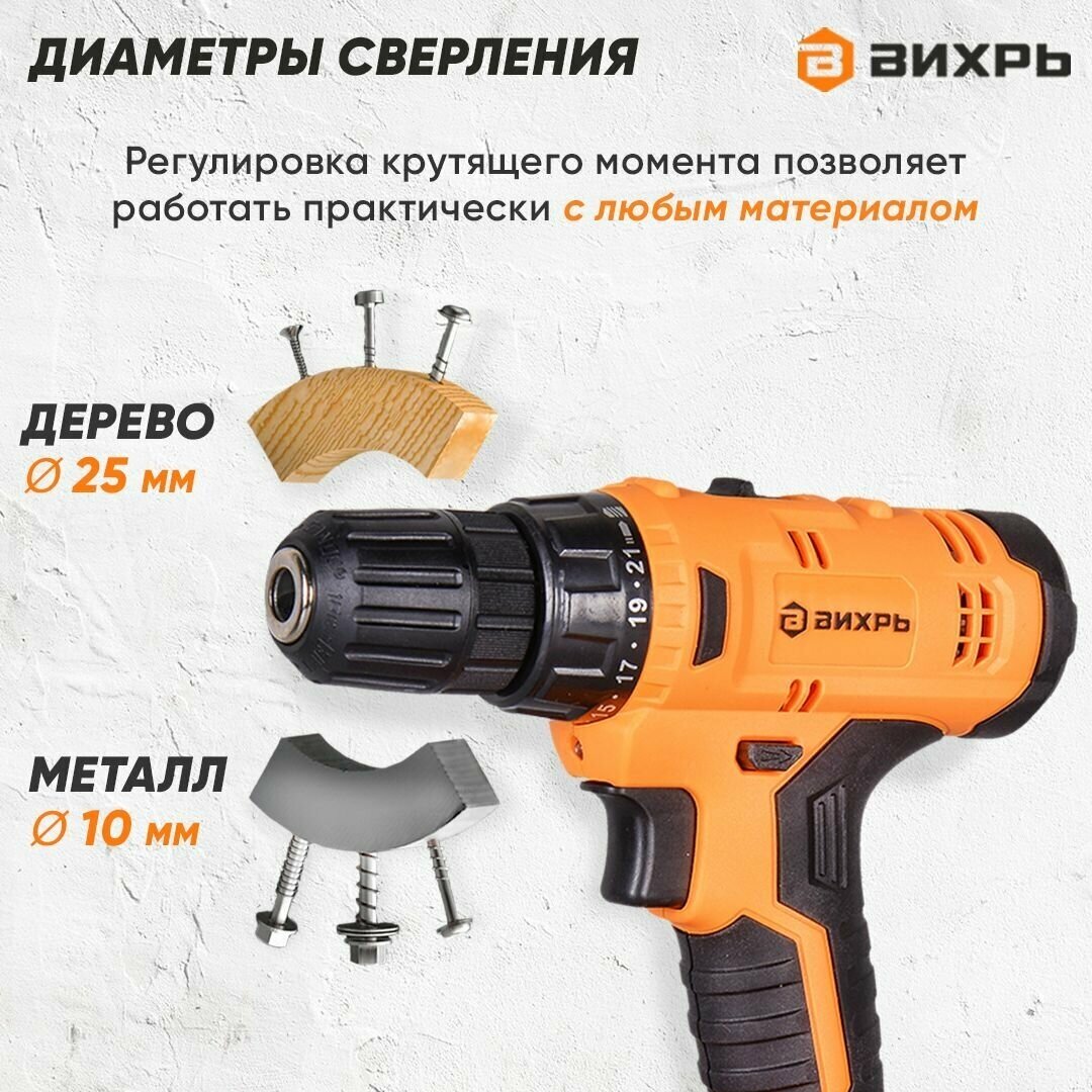 Аккумуляторная дрель-шуруповерт вихрь ДА-24Л-2К 2021