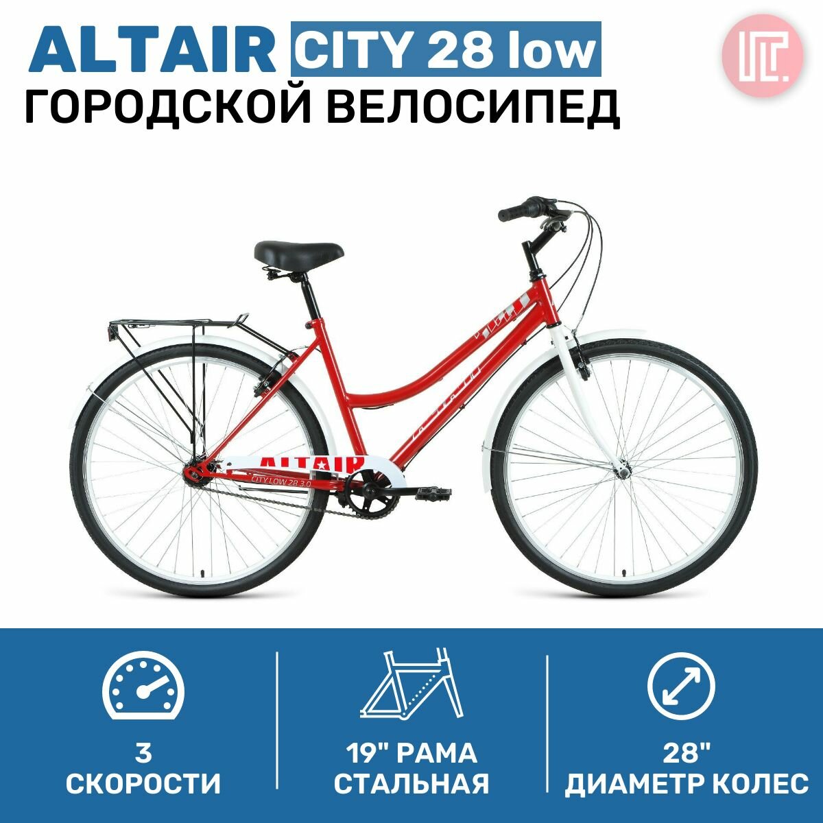 Велосипед ALTAIR City 28 low (2021) городской рам.:19" кол.:28" темно-красный/белый (RBKT1YN81008)