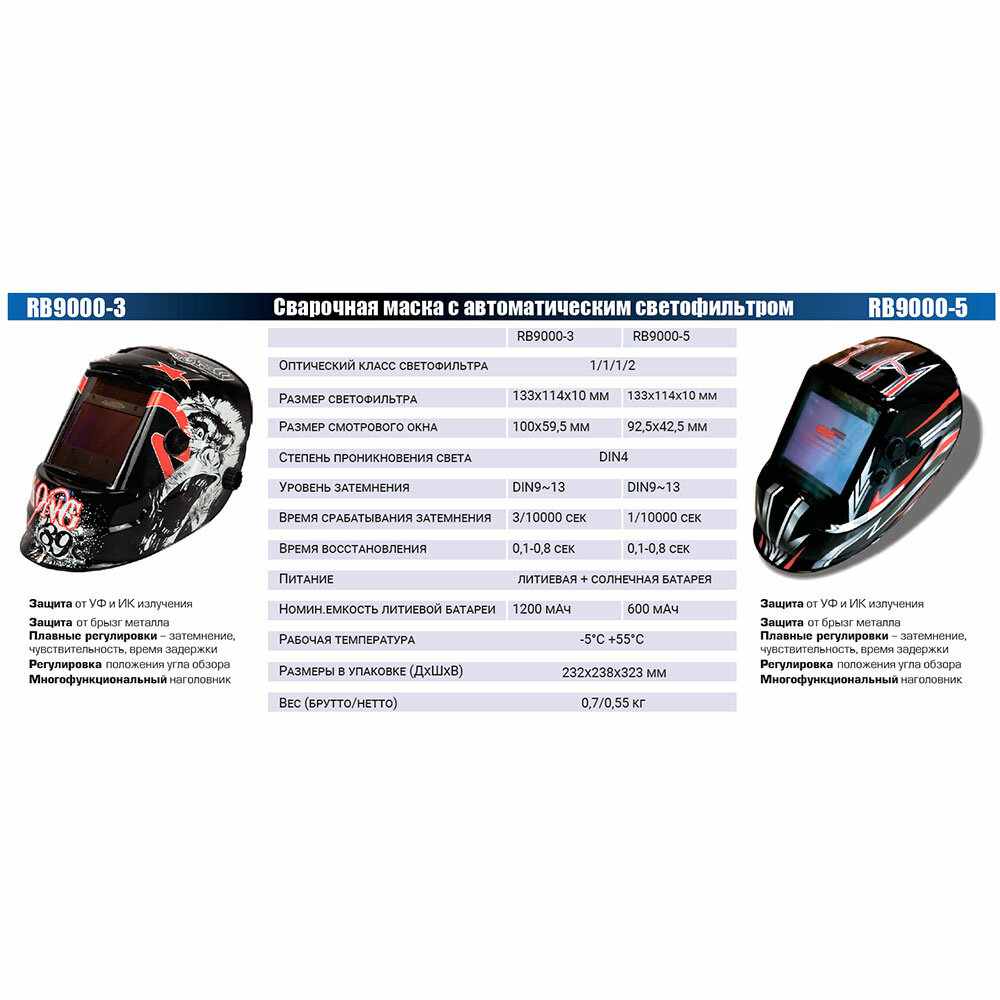 Маска сварочная RB-9000-5 Redbo Хамелеон интересное: