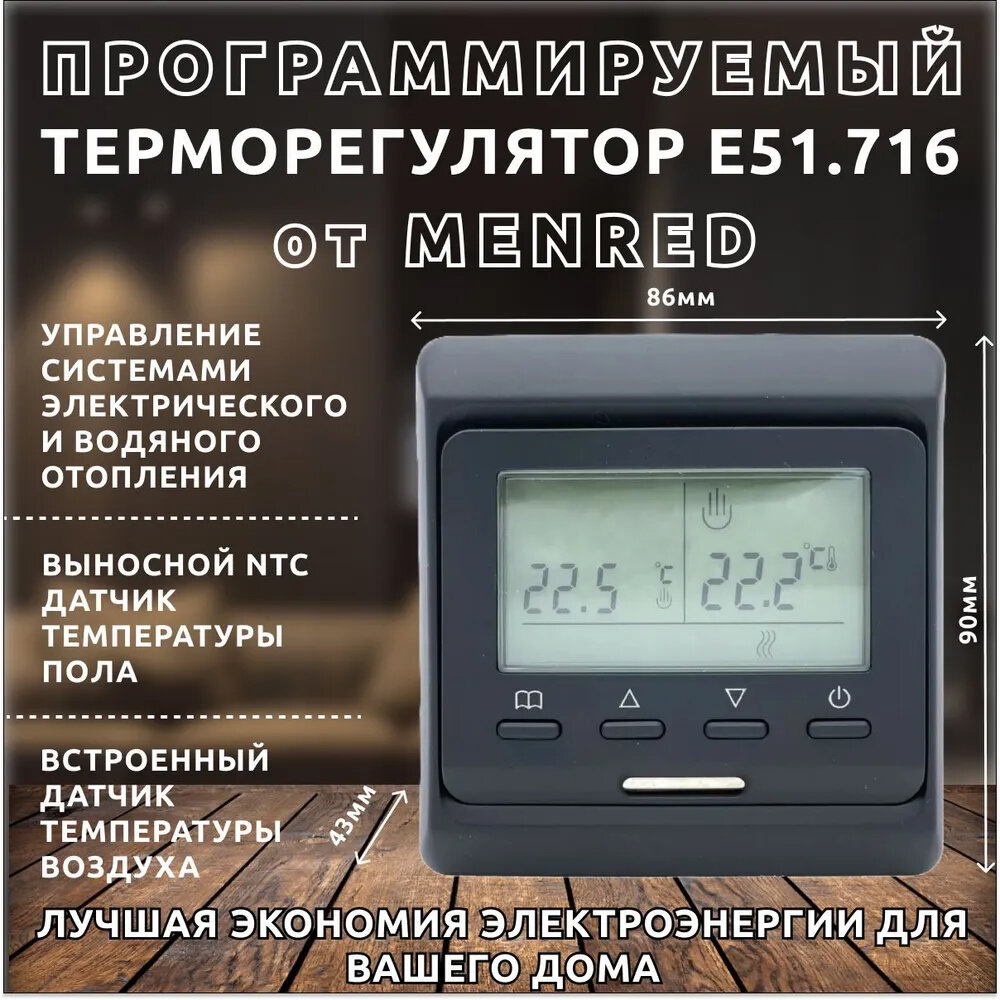 Терморегулятор для теплого пола Menred E51.716, черный