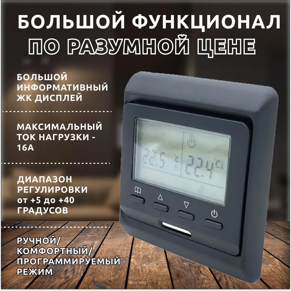 Терморегулятор E51.716 программируемый (с датчиком пола и воздуха), Цвет Черный