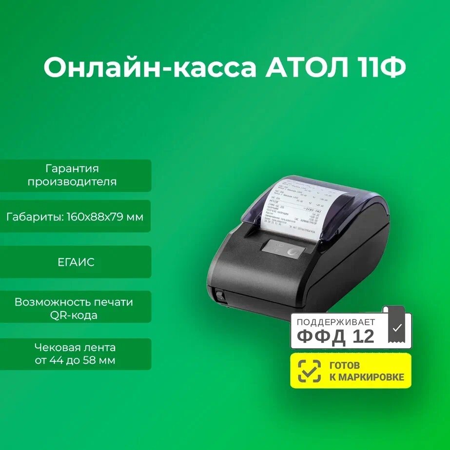 Фискальный регистратор АТОЛ 11Ф , арт. 50308, Черный. Без ФН. USB. RS-232. Платформа 5.0