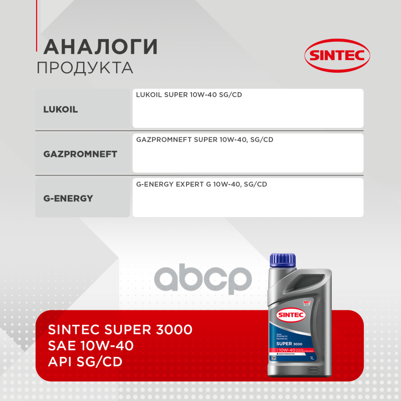 СохранитьМасло моторное SINTEC SUPER 3000 10W40 1л интересное: