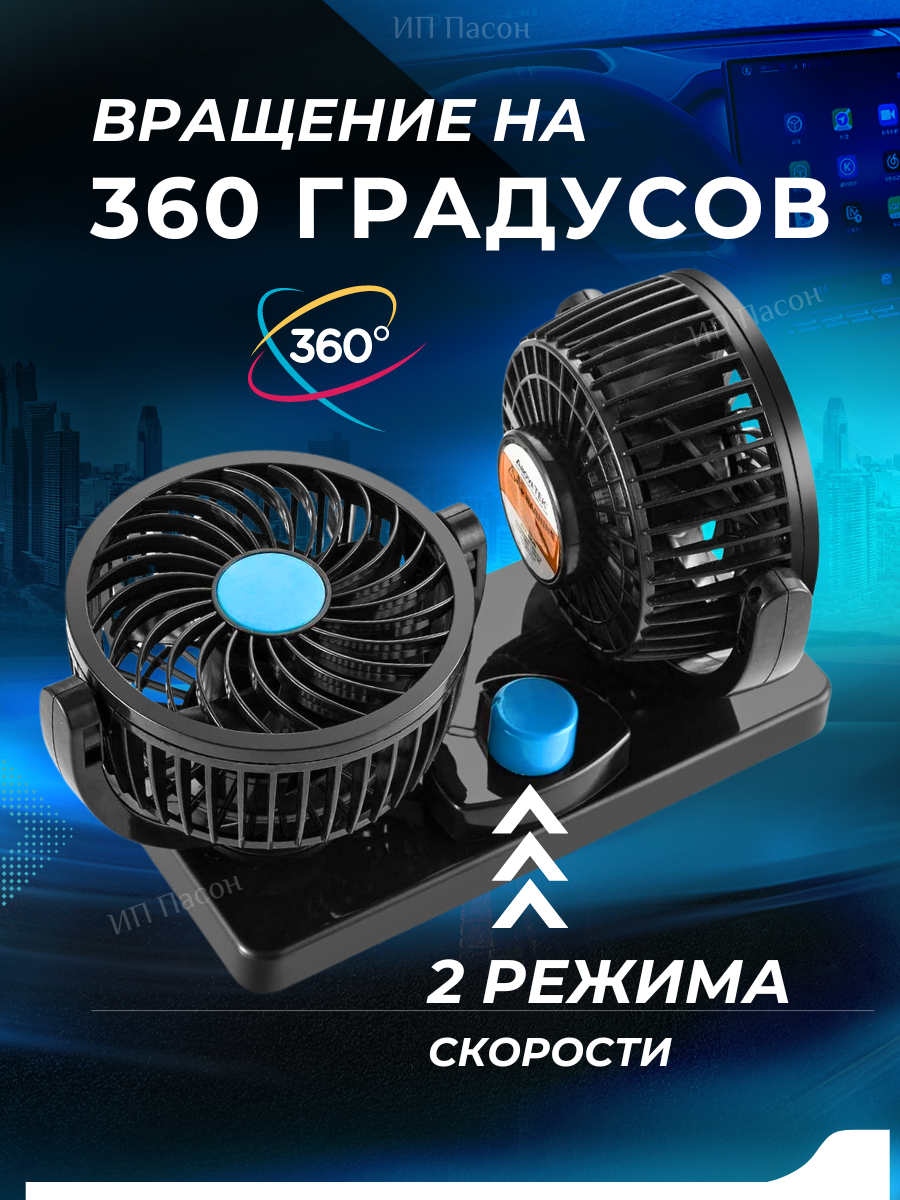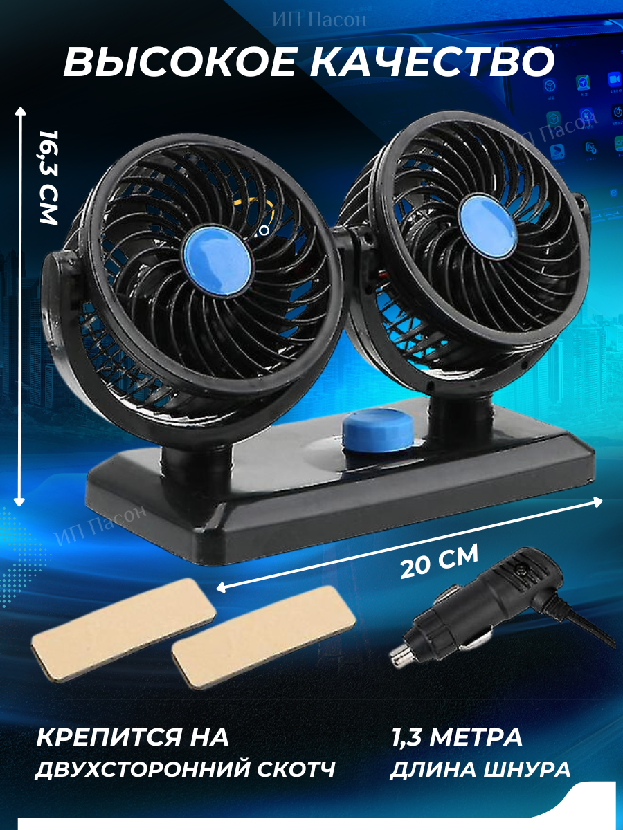 Вентилятор автомобильный Takara 3080 5 дюймов, двойной поворотный 12В