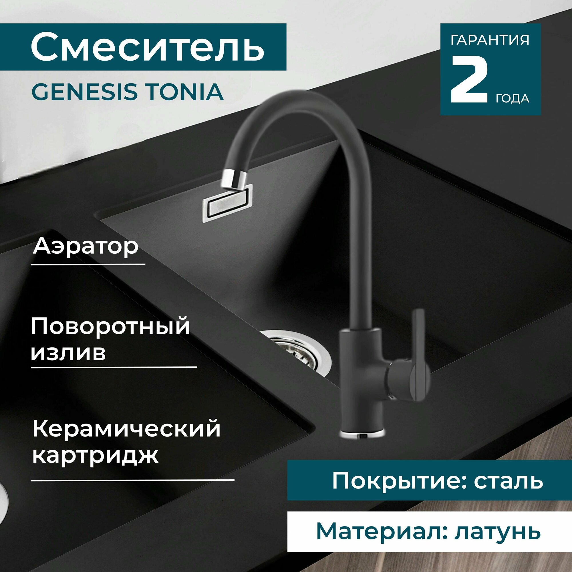 Смеситель для кухни с высоким поворотным изливом ALVEUS GENESIS TONIA G91 CARBON черный матовый