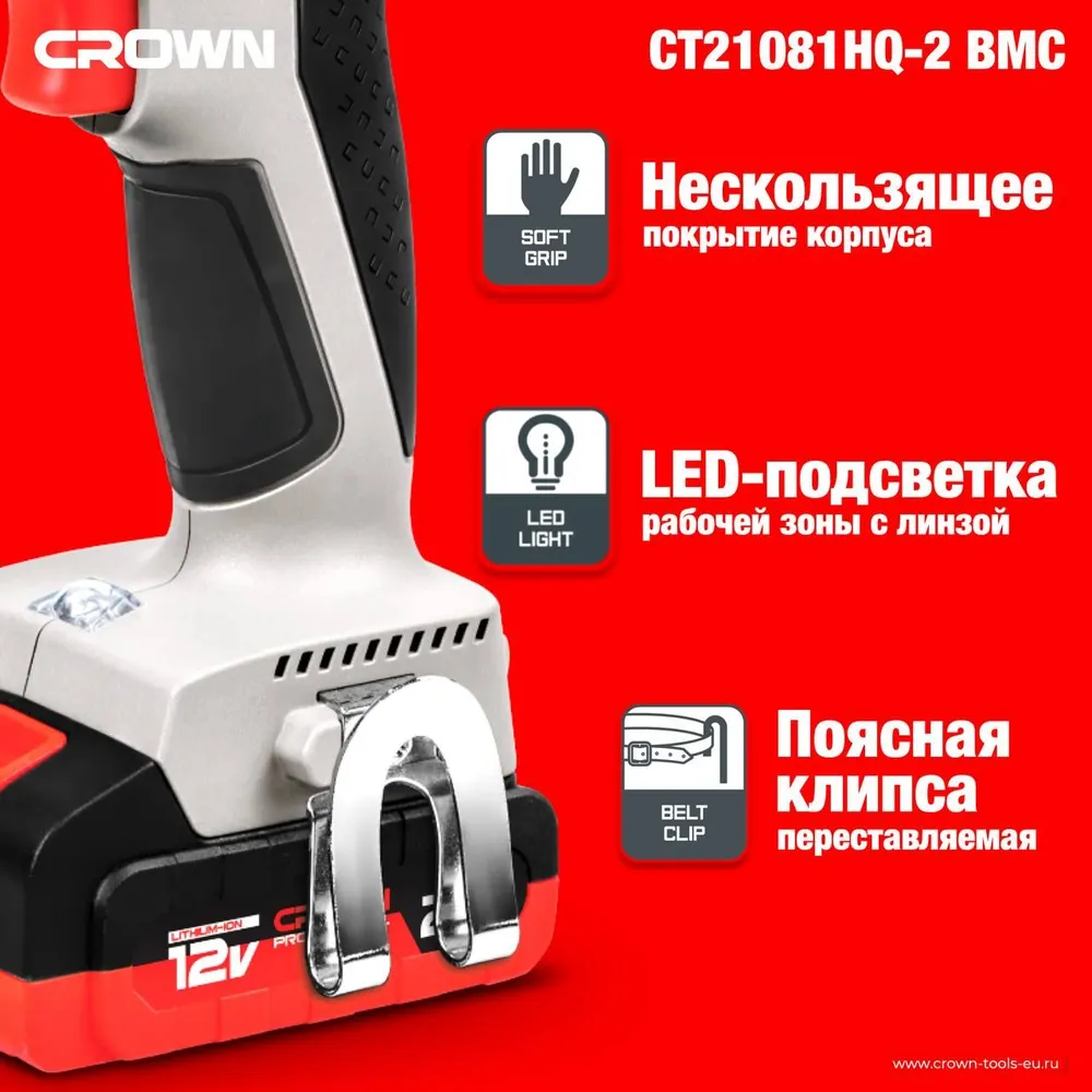 Шуруповерт аккумуляторный CROWN CT21081HQ-2 BMC интересное: