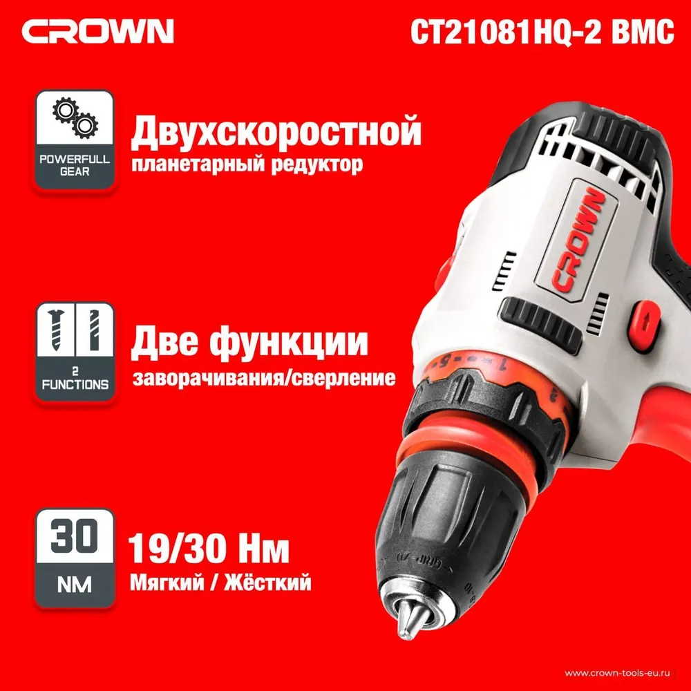 Дрель-шуруповёрт CROWN CT21081HQ-2 BMC