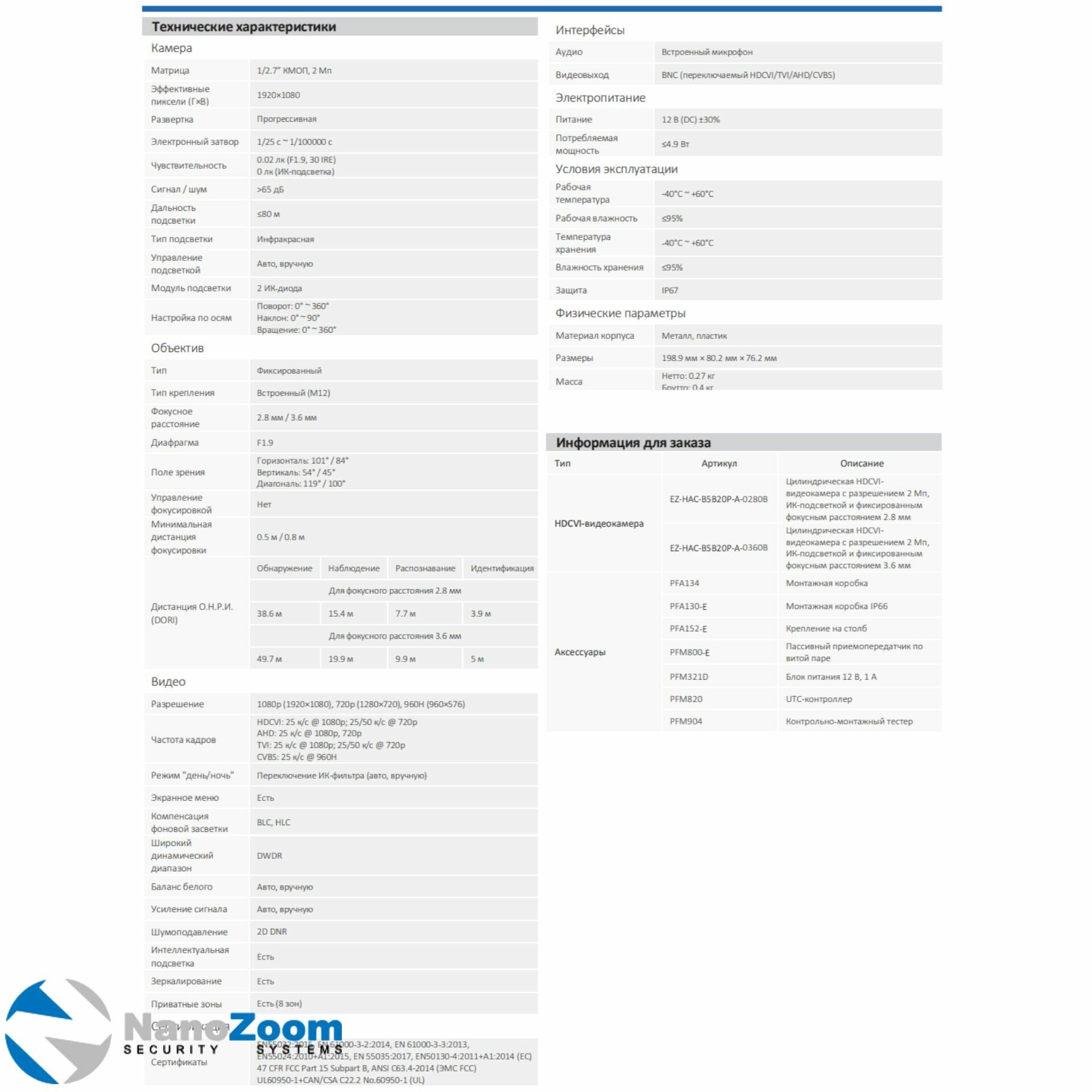Камера EZ-IP (EZ-HAC-B5B20P-A-0280B)