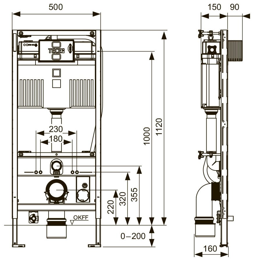 ТЕСЕ Рамная инсталляция TECE K440407. WC1 с унитазом ТЕСЕ V04 (комплект с клавишей TECEnow, черная матовая) K440407. WC1