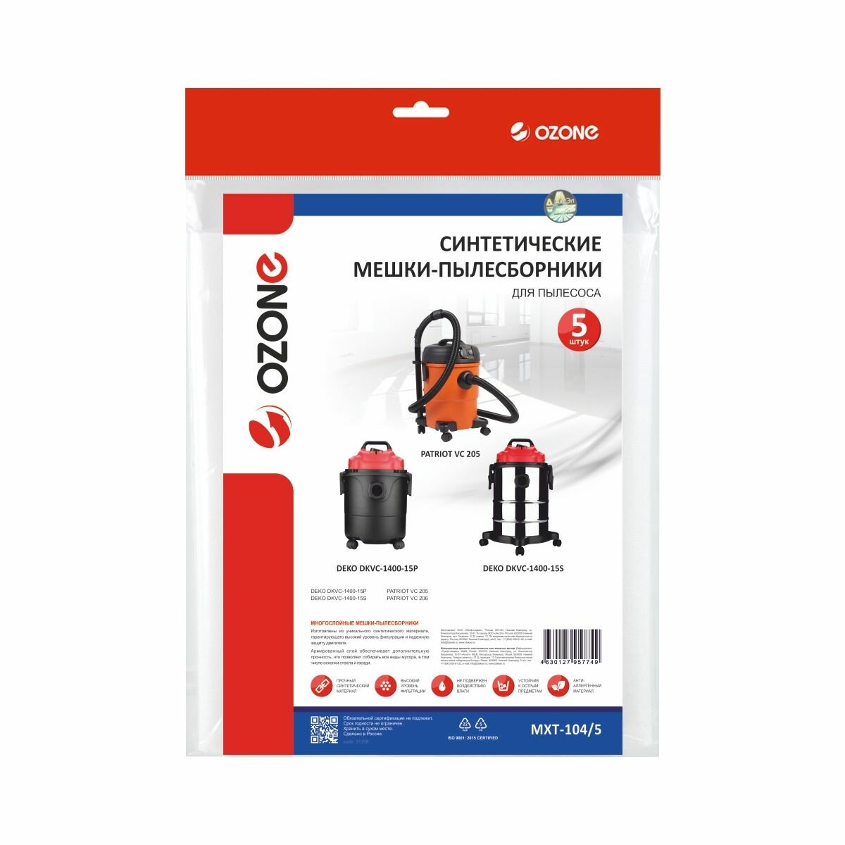 Мешки-пылесборники Ozone синтетические для пылесоса, 5 шт для DEKO, PATRIOT