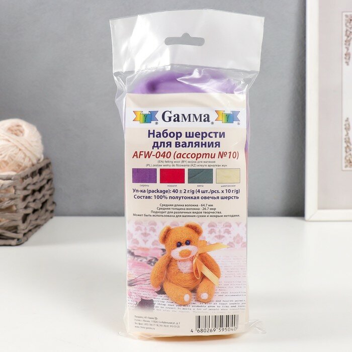 Купить Gamma' AFW-040 набор шерсти для валяния 100% мериносовая шерсть 4 х 10 г цвет ассорти №10