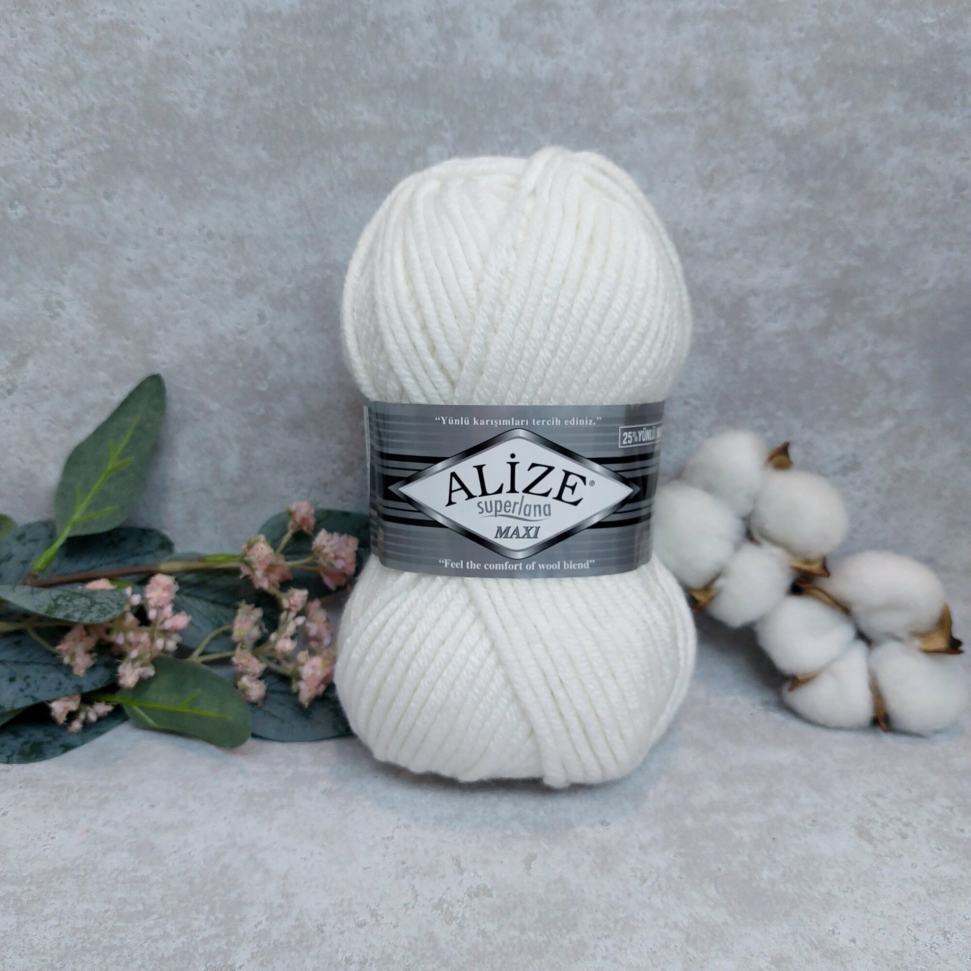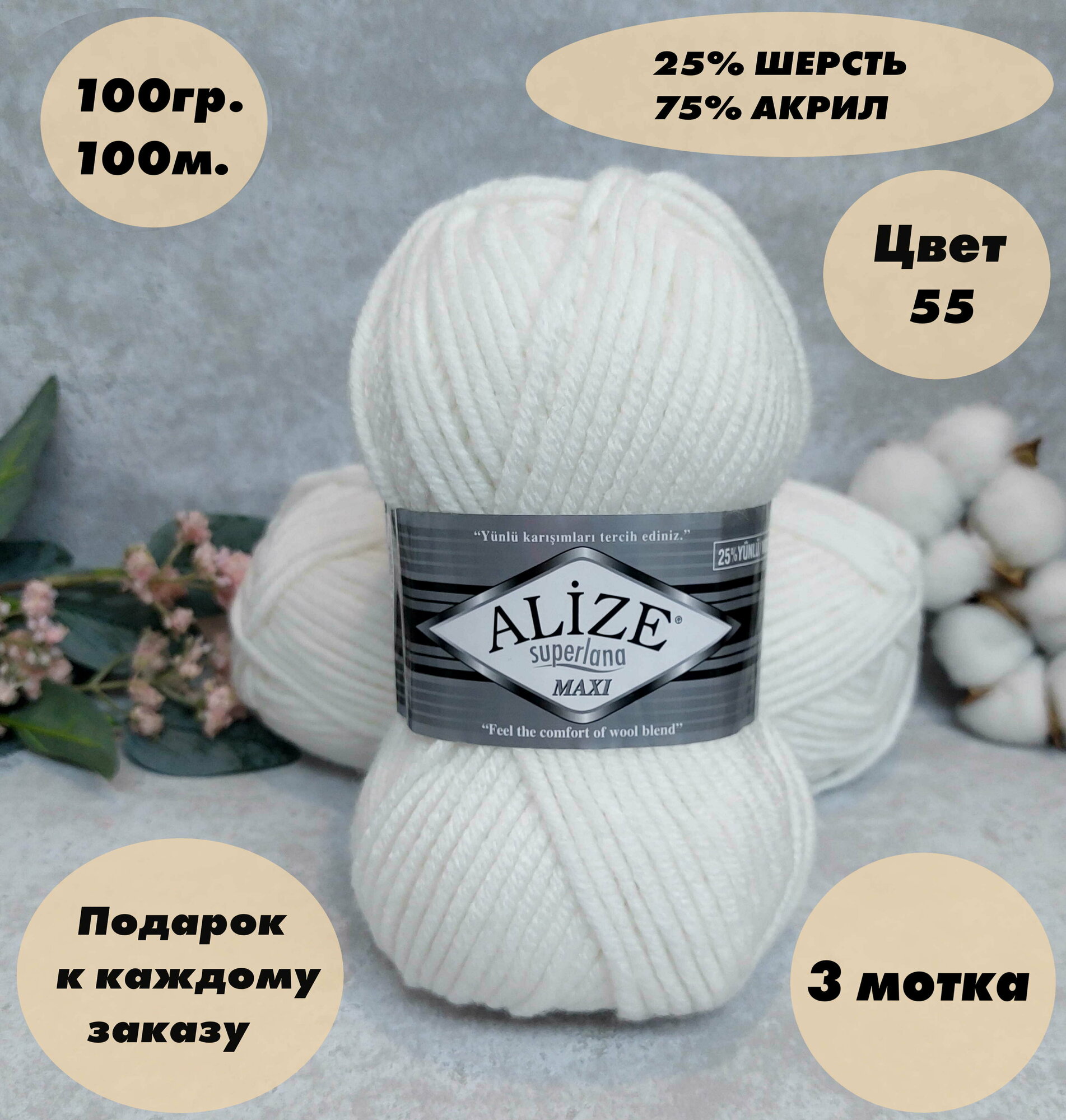 Купить Пряжа Alize Superlana Maxi белый (55), 25%шерсть/75%акрил, 100м, 100г, 3шт