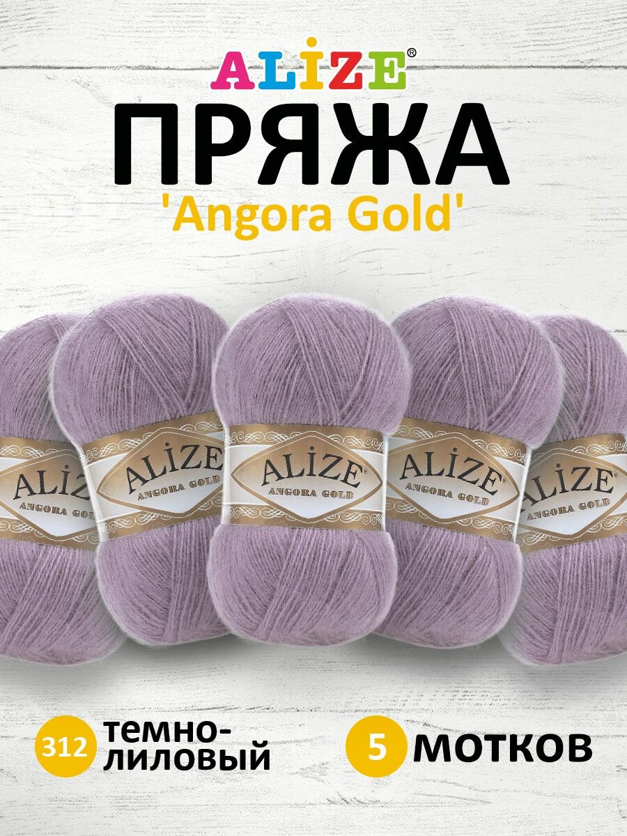 Пряжа для вязания ALIZE 'Angora Gold', 100г, 550м (80% акрил, 20% шерсть), ТУ (27 светло-сиреневый), 5 мотков