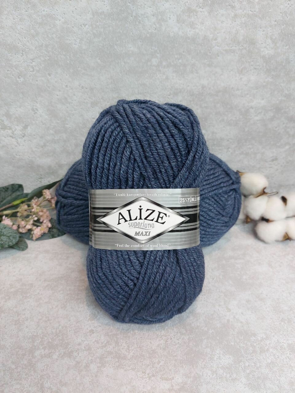 Купить Пряжа Alize Superlana Maxi джинсовый (203), 25%шерсть/75%акрил, 100м, 100г, 3шт