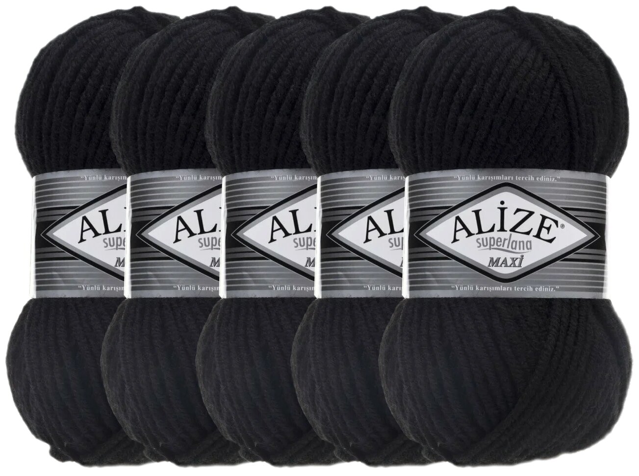 Купить Пряжа Alize Superlana Maxi черный (60), 25%шерсть/75%акрил, 100м, 100г, 5шт