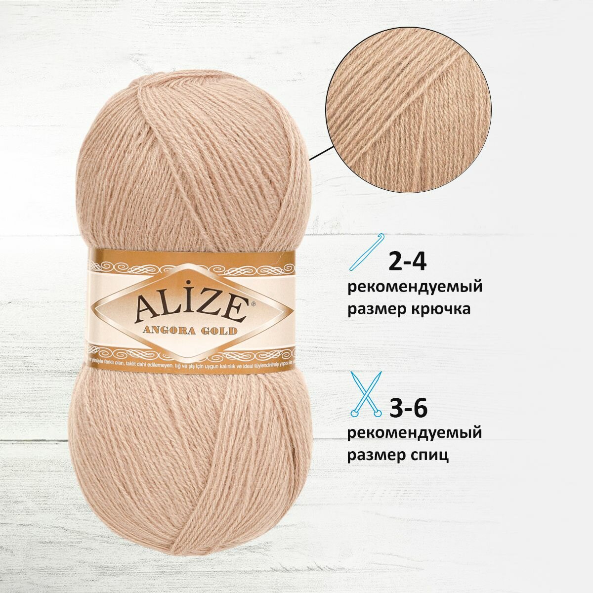 Пряжа Alize Angora Gold (Ангора Голд) 515 миндаль 20% шерсть, 80% акрил 100г 550м 5шт
