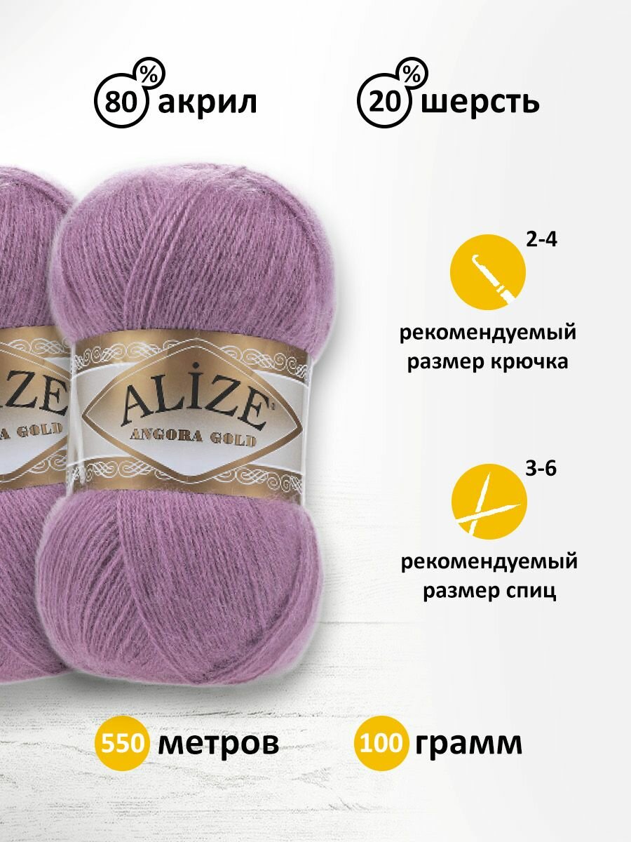 Пряжа для вязания ALIZE 'Angora Gold', 100г, 550м (80% акрил, 20% шерсть), ТУ (27 светло-сиреневый), 5 мотков