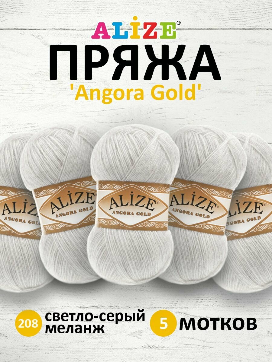 Пряжа для вязания ALIZE Angora Gold (Ангора Голд) цвет: светло-серый 208 , 5 мотков*100г*550м 20% шерсть 80% акрил