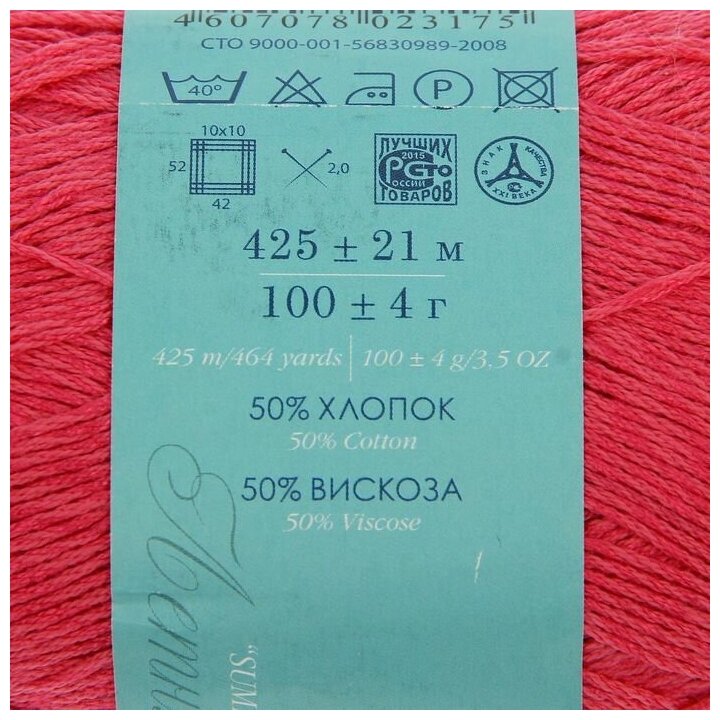 СохранитьПряжа Пехорская ПТ "Жемчужная" 50% хлопок, 50% вискоза 5 шт. х 100 г 425 м №439 малиновый интересное: